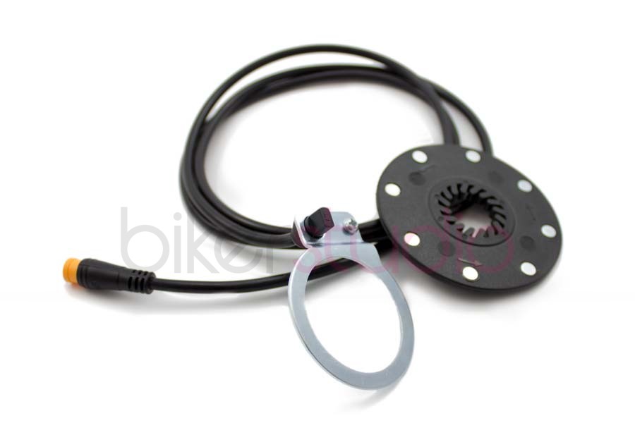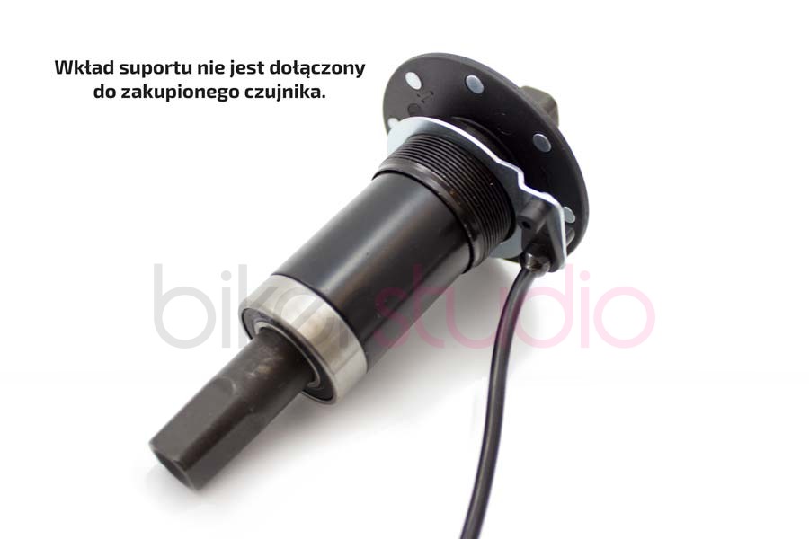 Czujnik kadencji składa się z dwóch elementów: tarczy z magnesami oraz czujnika z uchwytem.