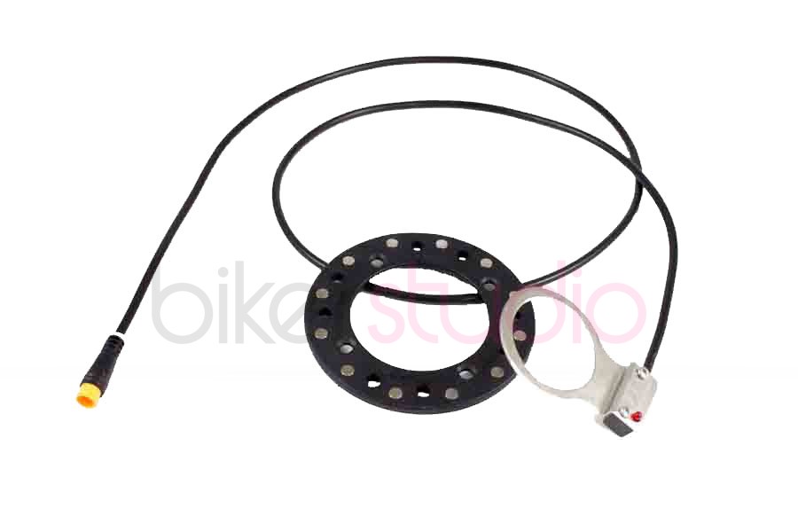 Czujnik kadencji składa się z dwóch elementów: tarczy z magnesami oraz czujnika z uchwytem.