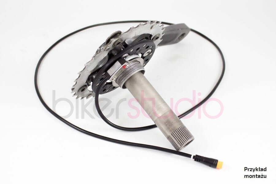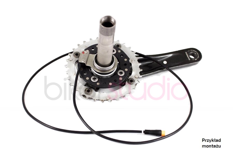 Tarcza z magnesami montowana jest w zamian najmniejszej zębatki w korbie ( korba musi mieć zdejmowane/rozkręcane zębatki z ramienia korby).