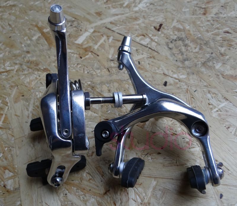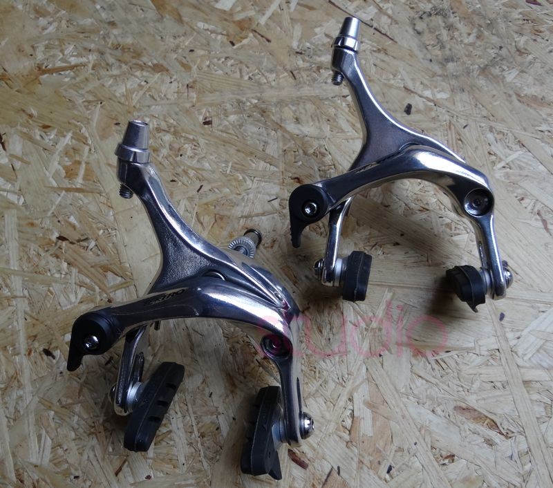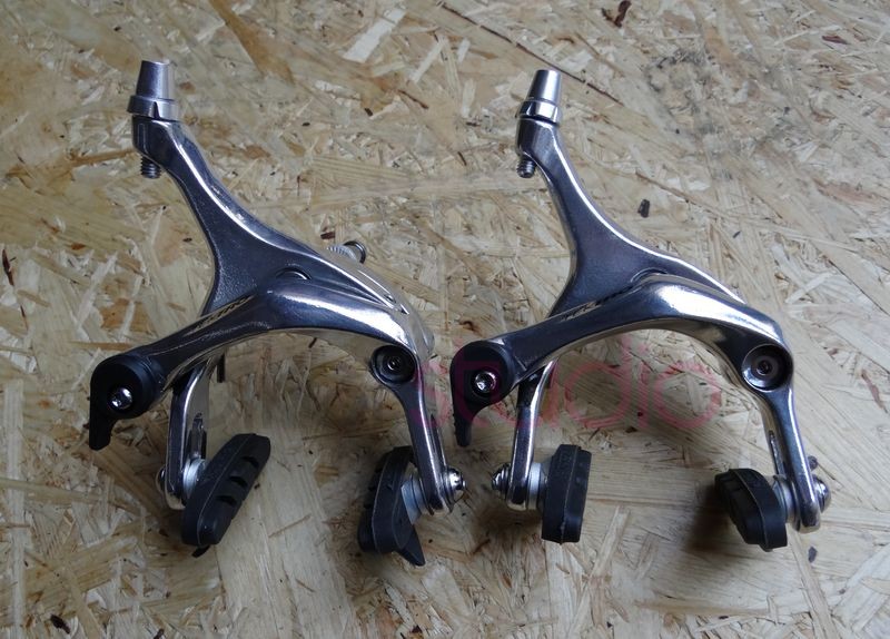 Hamulce szosowe w kolorze srebrnym.