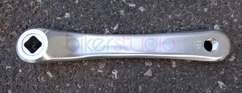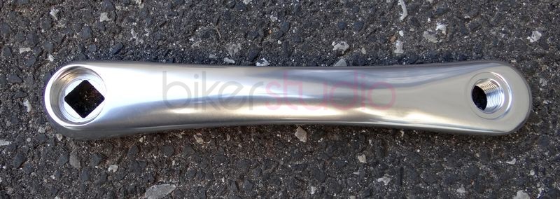 Lewe ramię korby w kolorze srebrnym.