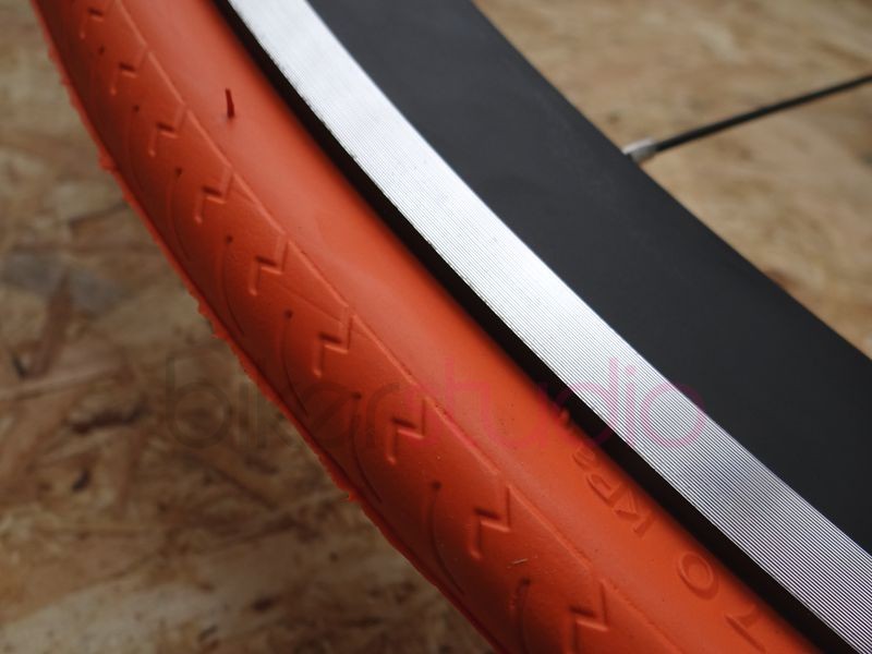 Opona szosowa Kenda w kolorze pomarańczowym.